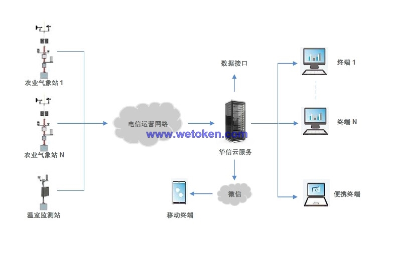 7400型農(nóng)業(yè)氣候站能對(duì)與植物生長(zhǎng)密切相關(guān)的土壤、水、氣、風(fēng)、光照、熱量和溫濕度等環(huán)境參數(shù)進(jìn)行自動(dòng)監(jiān)測(cè),數(shù)據(jù)通過(guò)基礎(chǔ)電信運(yùn)營(yíng)商網(wǎng)絡(luò)傳輸至接收終端,接收終端根據(jù)需要將測(cè)量數(shù)據(jù)推送至各個(gè)客戶(hù)端。氣候站適用于農(nóng)業(yè)生產(chǎn)、生態(tài)監(jiān)測(cè)、科研教學(xué)等專(zhuān)業(yè)領(lǐng)域,實(shí)現(xiàn)對(duì)設(shè)施農(nóng)業(yè)和綜合生態(tài)信息自動(dòng)監(jiān)控、控制和智能化管理。